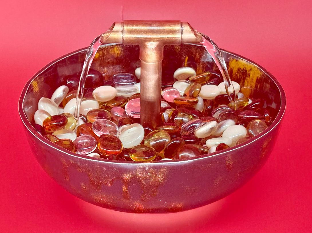 Fountain Includes: Pictured copper top & glass gemstones, as seen in photo.
